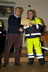 Carrara garantendo le turnazioni, Losi Patrizio Presidente Nazionale F.I.R.-C.B.-S.E.R. consegna all’Associazione Radio CB Lunigiana di Aulla a nome della Federazione Italiana Ricetrasmissioni, l’attestato di Benemerenza per l’impegno e la dedizione durante l’Emergenza Alluvione del 25 Ottobre 2011 nonostante abbiano perso tutte le attrezzature nell’alluvione, il Presidente